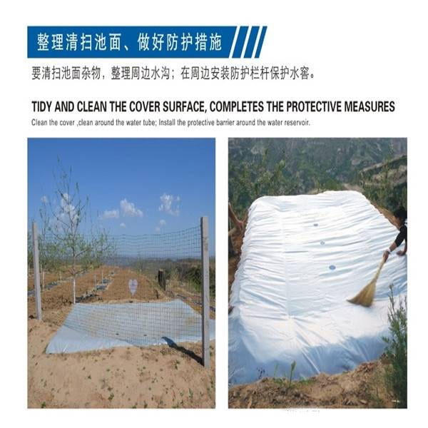 下端固定好以后,把上端集雨面展開鋪在斜面上,用錨固釘將扣眼固定在地面??垩酃潭ㄍ瓿珊螅昝嫠闹苓吘壭栌猛裂诼?,防止大風(fēng)吹起。