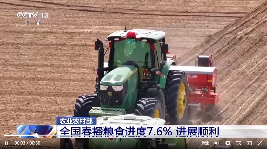 農(nóng)業(yè)農(nóng)村部最新農(nóng)情調(diào)度顯示,目前,全國春播糧食進(jìn)度7.6%。分作物看,早稻育秧過八成,進(jìn)度同比快2個(gè)百分點(diǎn),栽插過兩成,進(jìn)度略快于去年同期。中稻已育秧16.1%。春小麥已播27%,春玉米已播5.5%,薯類已播26.3%,春大豆已播2.6%。全國春播總體進(jìn)展順利。